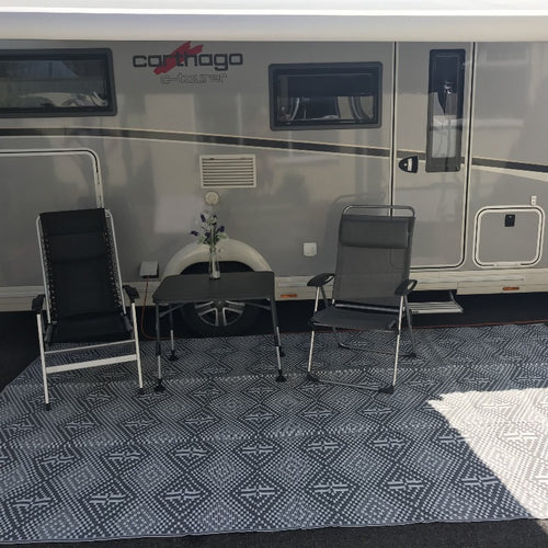 Having owned various Motorhomes over the past 30 years, it was by travelling through Morocco we first came across this product. Used by the locals in their homes and gardens, this woven plastic matting provides the ideal flooring solution to cover all floor types. With the vibrant designs and colours we knew this matting would make the perfect Awning Matting.